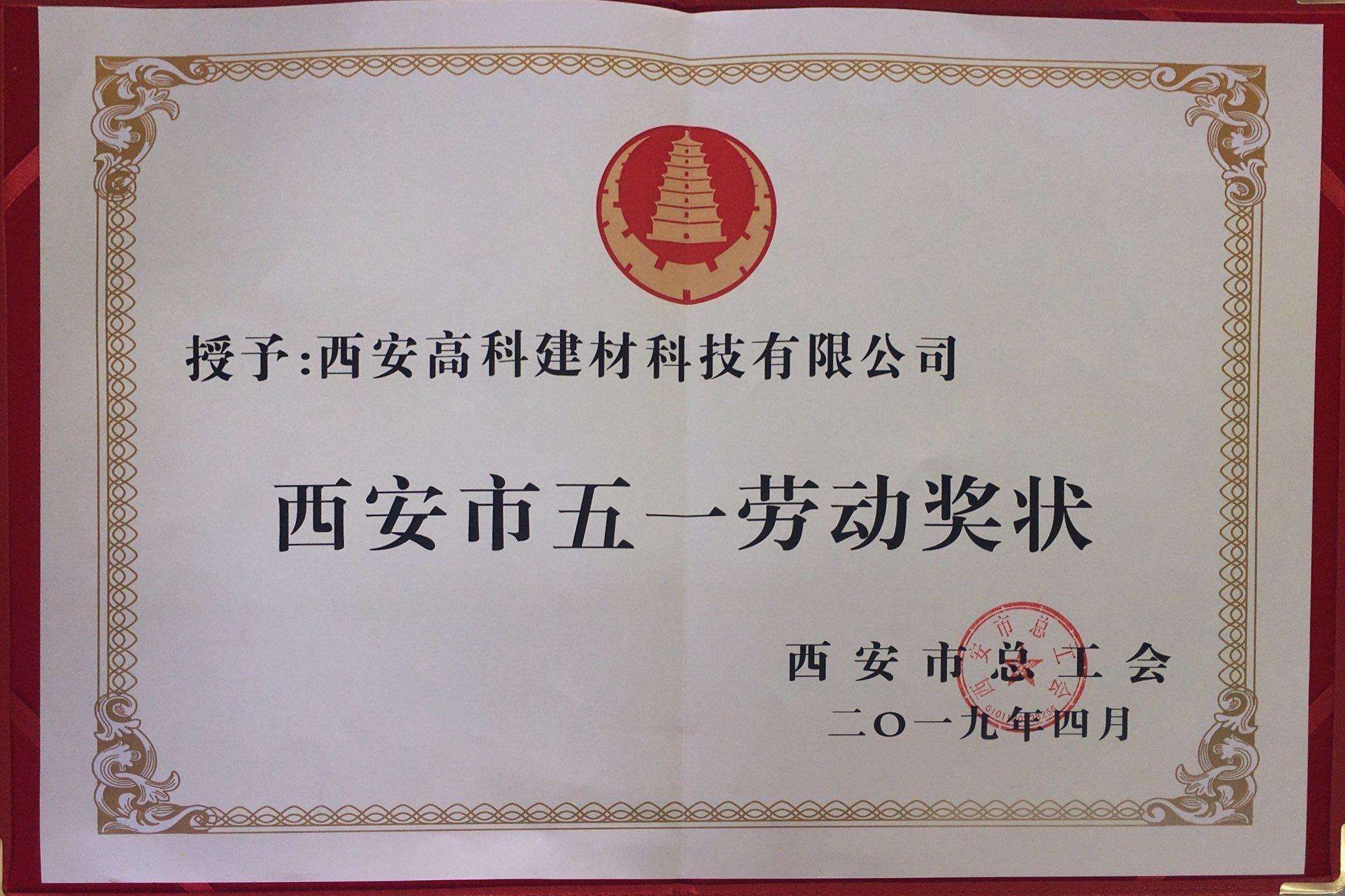 西安市五一勞動獎狀